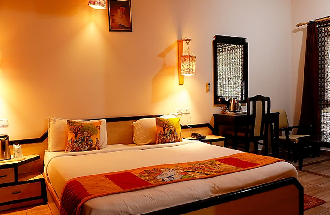 Krishna Wilderness Retreat , CORBETT spread over 1.5 acres of land is a Boutique resort with soothing ambiance. It is approx. 5 kms from the Bijrani Gate of Corbett. Krishna Wilderness Resort is nestled amidst Mango grove providing a unique opportunity to feel the bliss of Mother Nature. One can hear the chirping of birds early in the morning and feel the swaying breeze playing hide and seek between Mango trees. In winters mango trees fill your vision to a verdant green and during summers when the mango trees are in full bloom one may get to hear a bee humming the Nature song.
